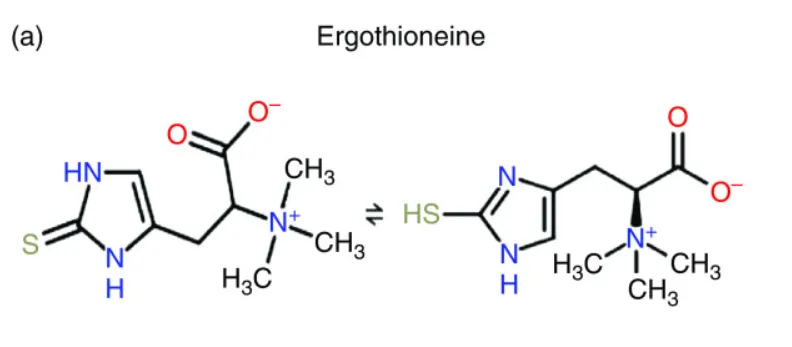 Ergotioneín (EGT) je prirodzene sa vyskytujúca aminokyselina, ktorá existuje v tiolovej aj tionovej forme izomérnych štruktúr. Tiónový izomér prevláda pri fyziologickom pH, čo dáva ergotioneínu mimoriadne silné antioxidačné vlastnosti.