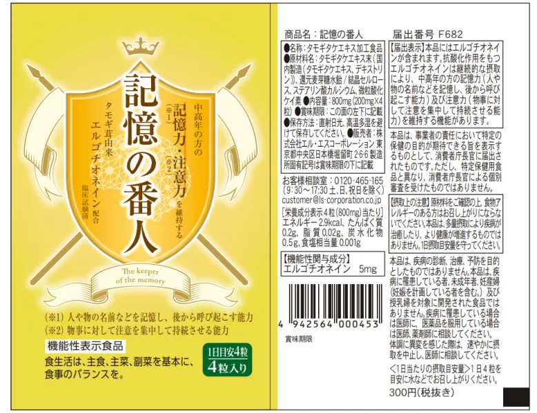 Doplnok ergotioneín uvedený na trh japonskou spoločnosťou LS Corporation je produkt určený na riešenie poklesu pamäte u ľudí v strednom a staršom veku.